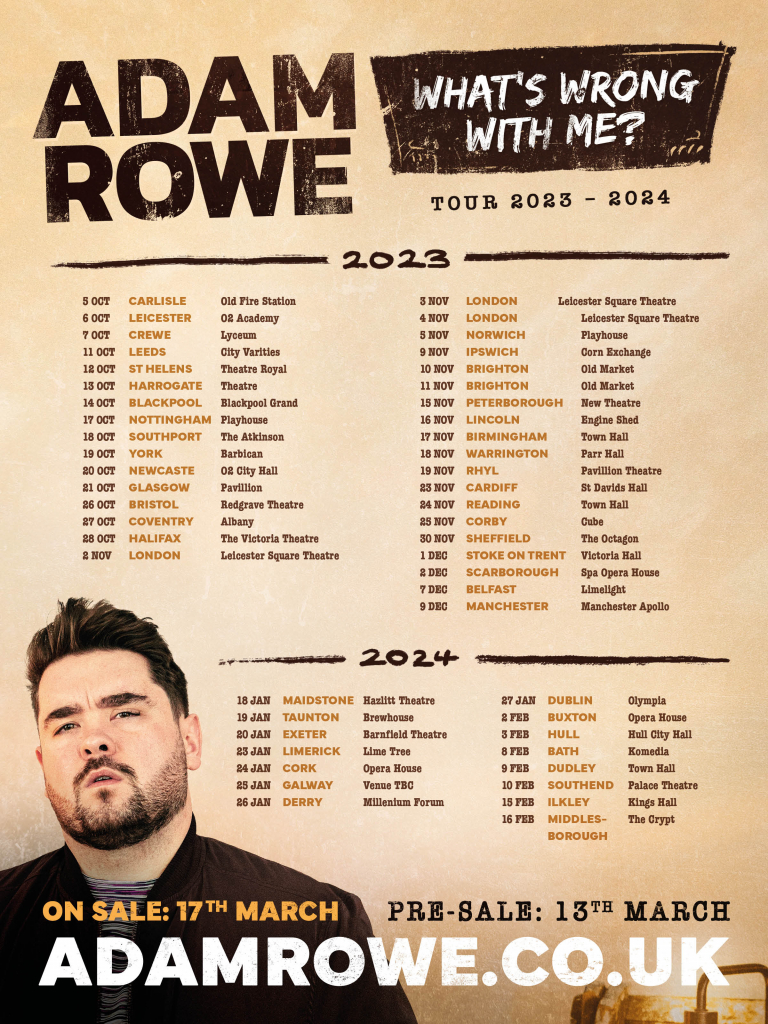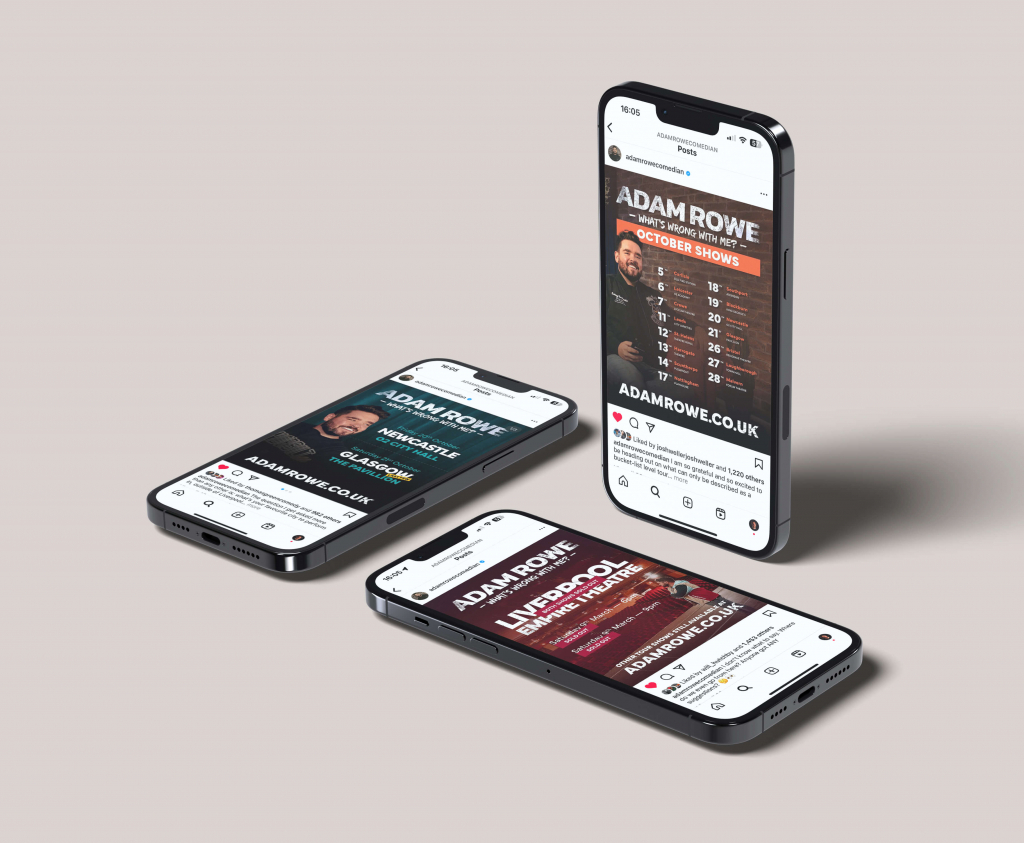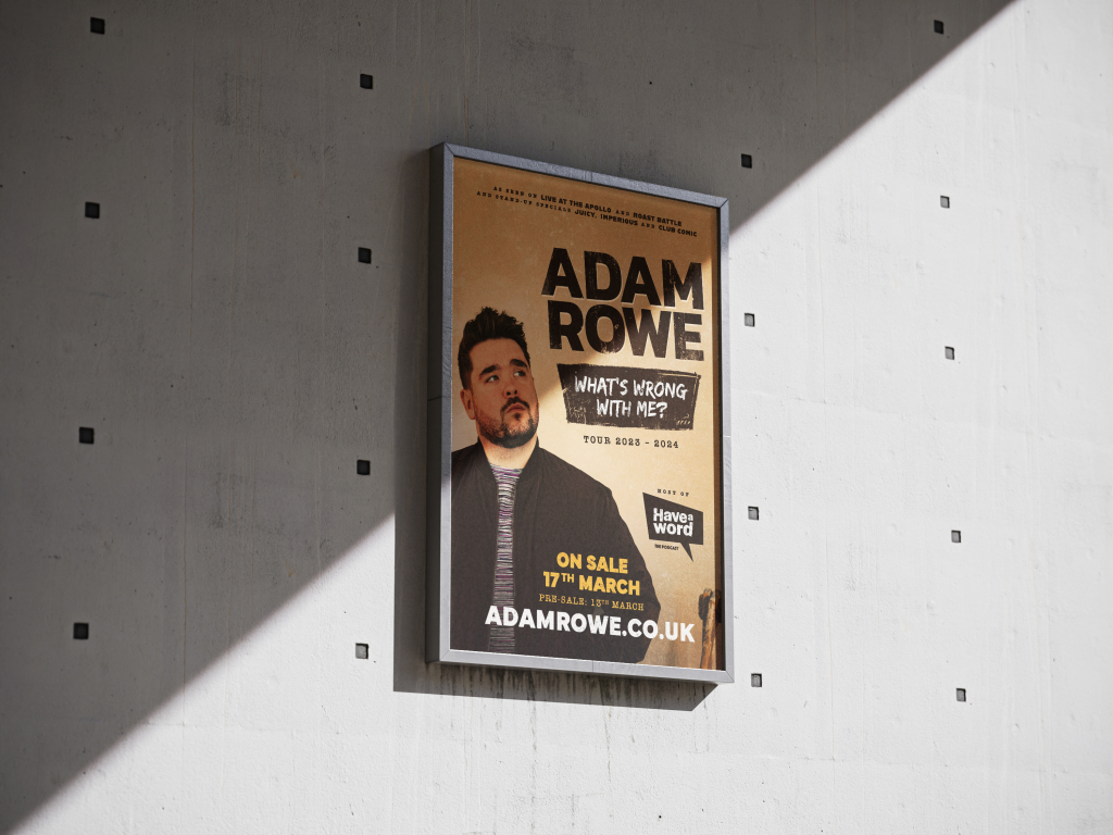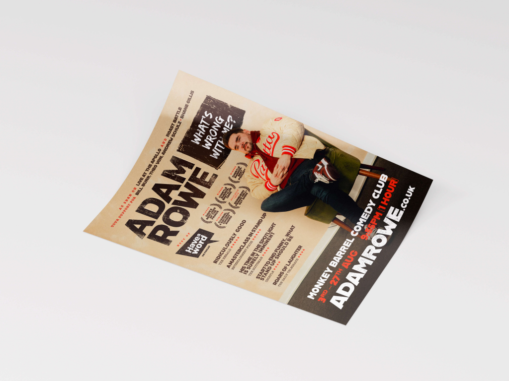 A distinctive visual design for Liverpool-based comedian Adam Rowe’s monstrous 2023-2024 tour, rolled out across all promotional materials including YouTube thumbnails, credits and titles, social posts, posters and flyers.