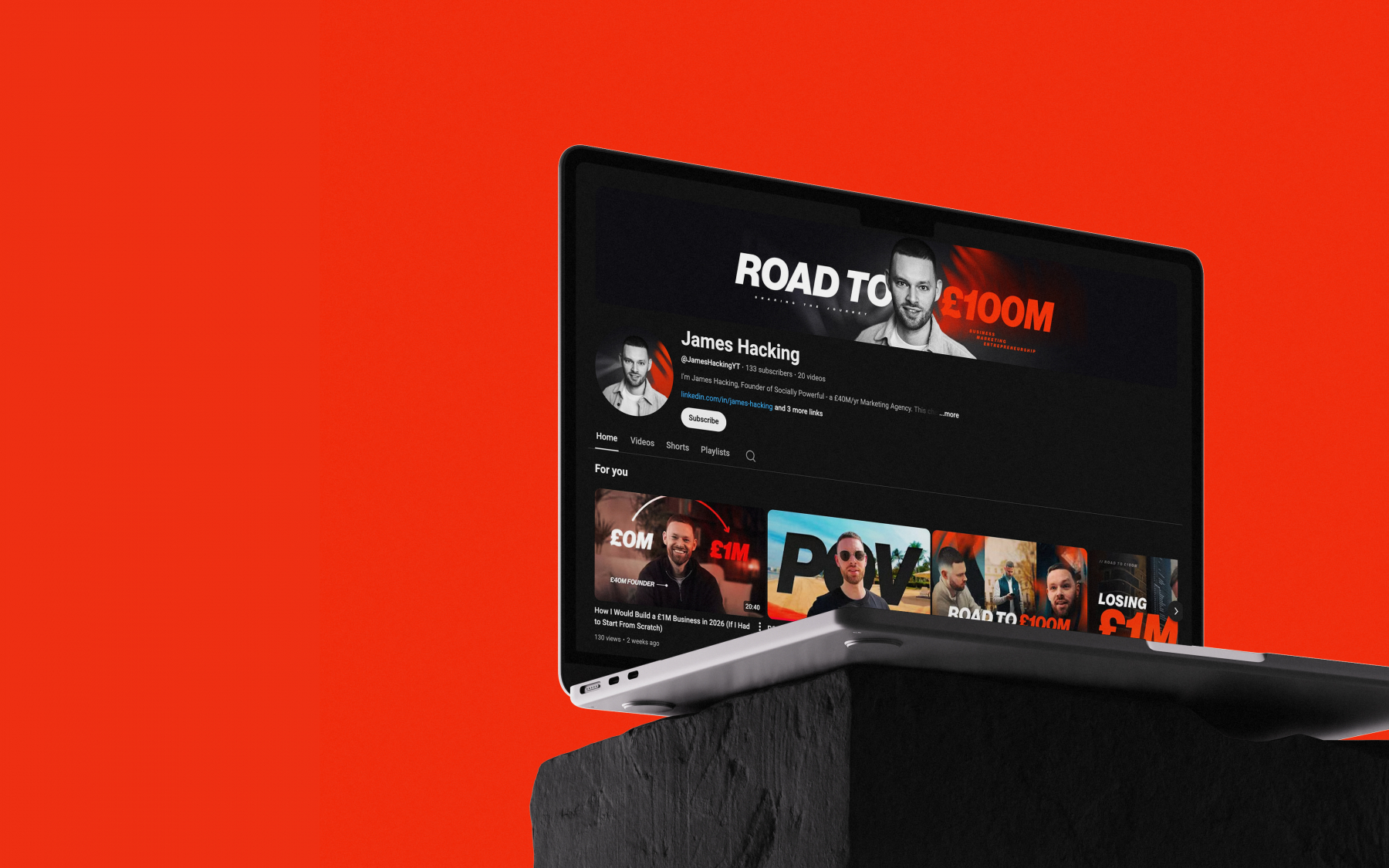 I was brought on by Channel Velocity to build a visual identity for the YouTube channel of James Hacking, founder of Socially Powerful. James is documenting his journey to building a £100m agency, capturing the gritty reality of the highs and lows, and you can watch his process here.