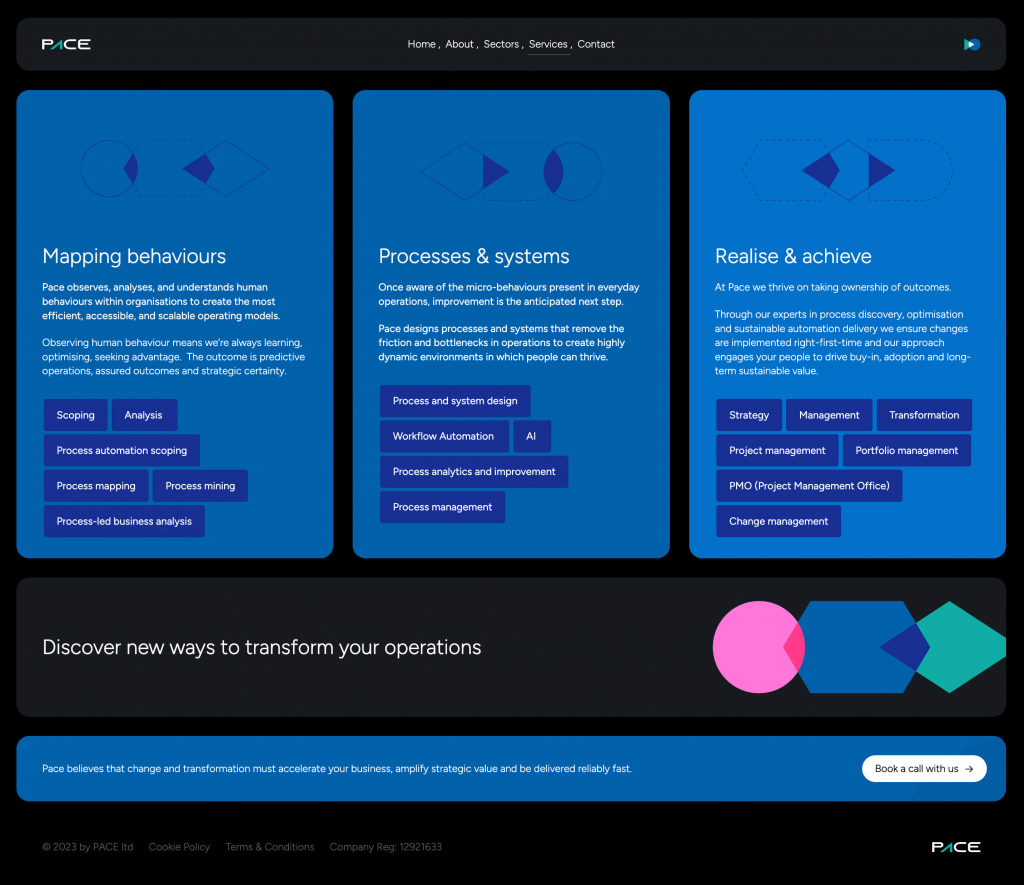 A fully bespoke WordPress-powered website for PACE Ltd, a London-based business growth consultancy. Project created in conjunction with the Robots & Humans team. Visit website →